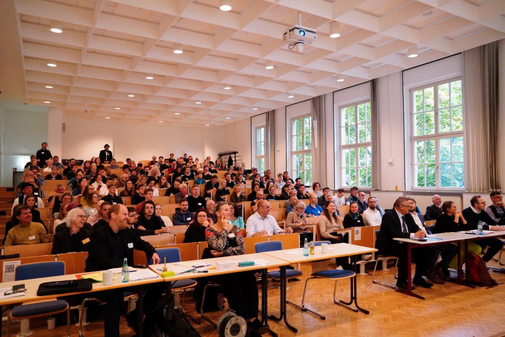 Dass Fortschritt und Tradition kein Widerspruch ist, zeigten Beiträge aus Forschung und Industrie. Dr. Franziska Knoll (GOLEHM-Initiative) und Maximilian Breidenbach (Claytec) stellten den modernen Lehmbau als vielversprechende Alternative zu konventionellen Bauweisen vor.