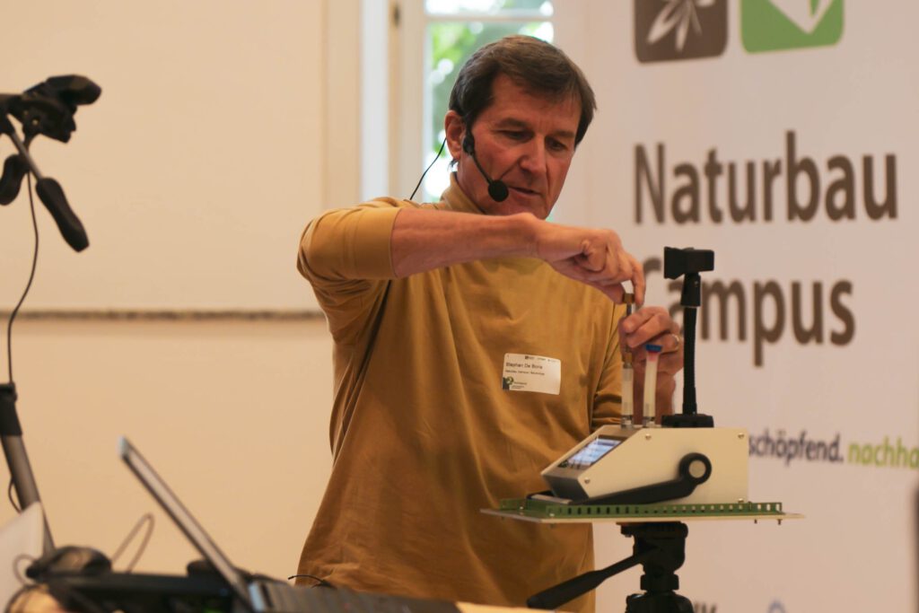 Ein Highlight war zudem der Beitrag des Baubiologen Stephan De Bona, der während der Veranstaltung eine Live-Raummessung durchführte und damit die Luftqualität in Echtzeit untersuchte. Er konnte nachweisen, „ob und was in der Luft ist – aber nicht immer, wo es herkommt“. Sein Experiment unterstrich die Relevanz eines gesunden Innenraumklimas und sensibilisierte für die oft unsichtbare Dimension des nachhaltigen Bauens.